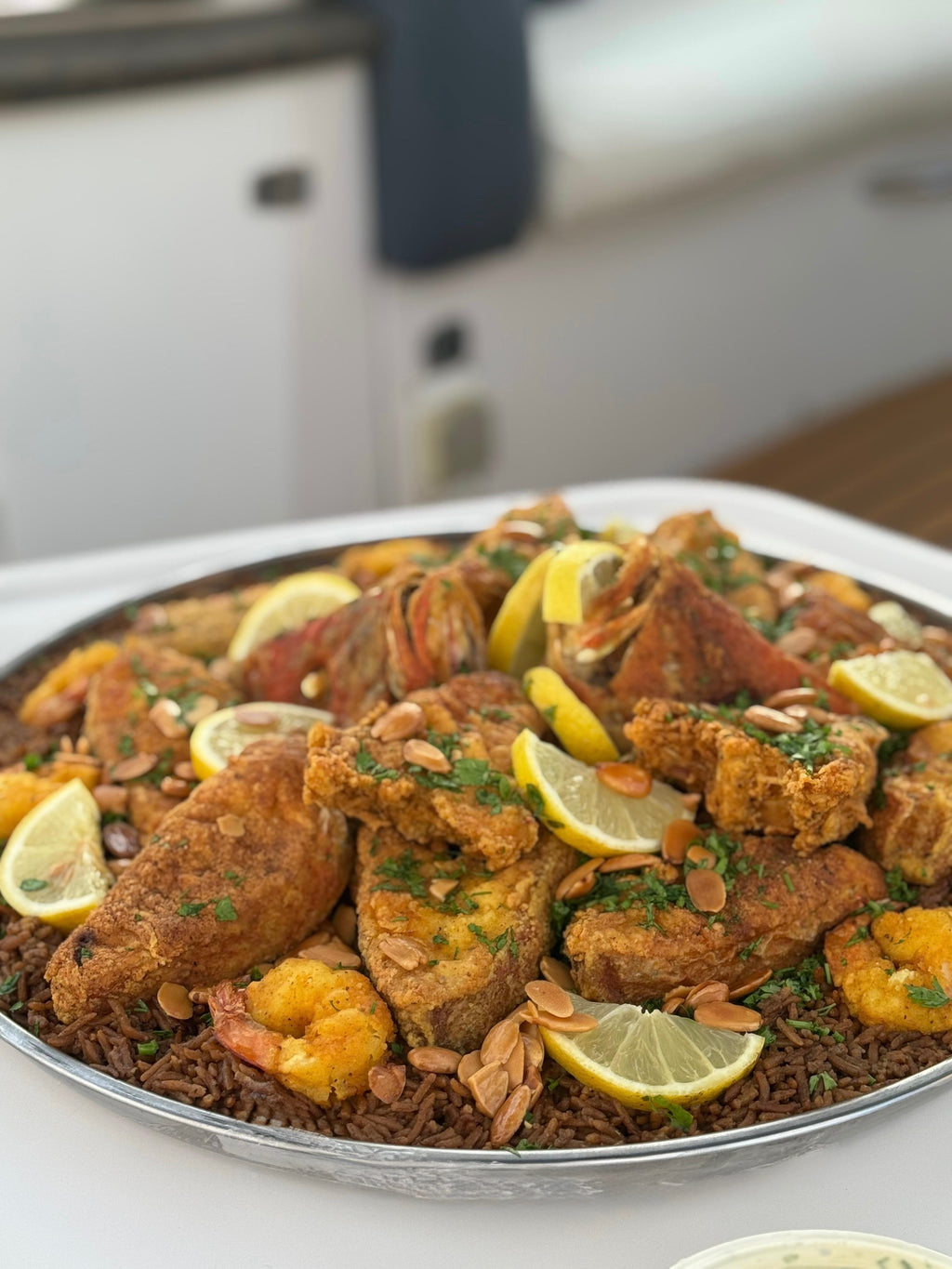 Authentic Aqabawi Sayadieh, prepared the traditional way using fresh fish & shrimp 🐟🦐